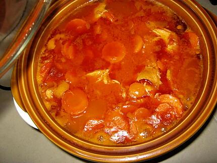 Ajoutez au mélange carotte/oignons/poireau, les tripes, les tomates, le sucre, le bouquet garni et l'ail.